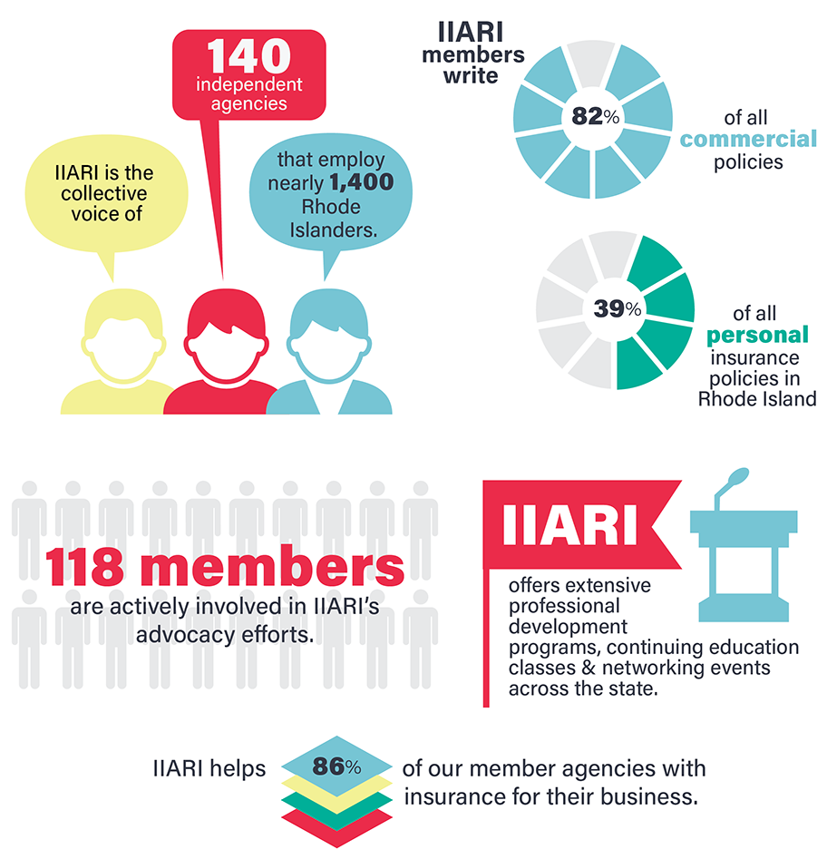 The Independent Insurance Agents of Rhode Island (IIARI) is a trade association established on July 25, 1900. IIARI membership includes most every independent agency in Rhode Island who employs nearly 1,400 individuals.